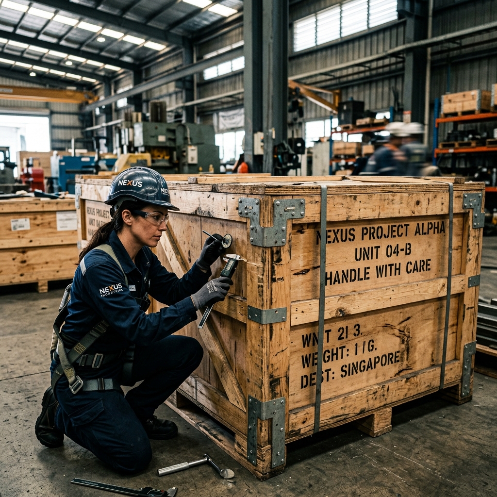 Strategic edge protection and specialized angle boards for delicate industrial components.